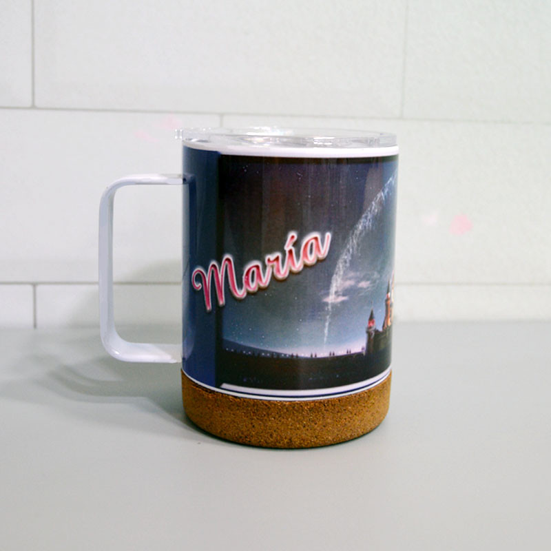 - Taza térmica Loret de acero Inox con base de corcho de 330ml. capacidad.