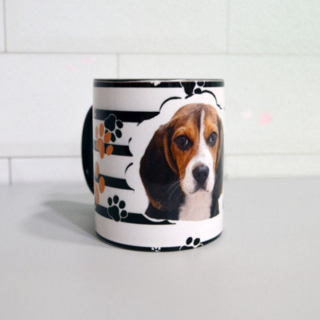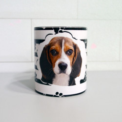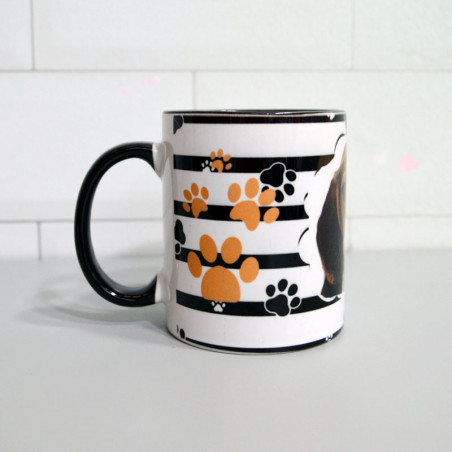 - Taza personalizada con diseño para mascota, podrás añadir la foto y el nombre de tu mascota.