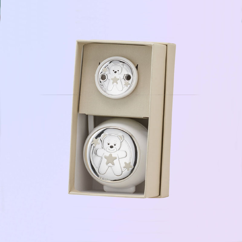 - Juego pinza y porta chupete infantil Osito con estrella.