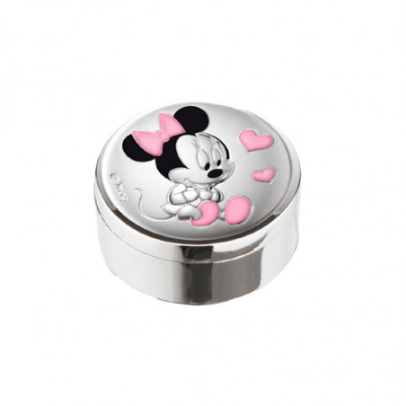 - Preciosa cajita para guardar los dientes en plata laminada con el bonito dibujo de Minnie con detalles en color azul.