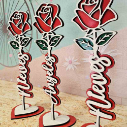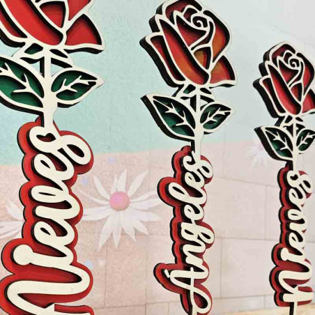 - Rosa de madera personalizada: cada rosa de madera está minuciosamente elaborada y personalizada con el nombre de su elección, lo que agrega un toque único este regalo.